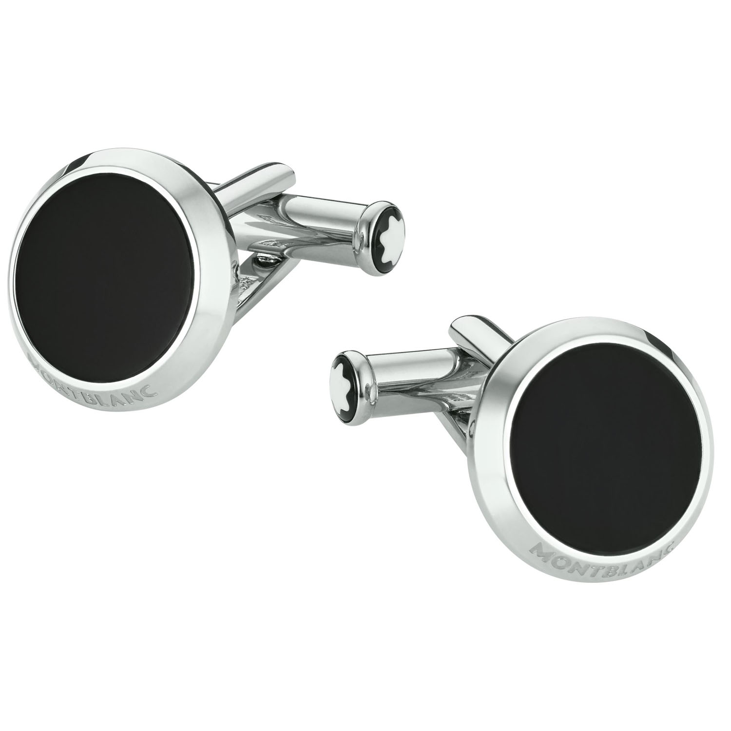 Meisterstück cufflinks celebrate understated style and elegance. Linked to the Montblanc Meisterstück Writing Instrument, the timeless round shape in stainless steel with a black onyx inlay creates a jewel with a powerful Montblanc signature.