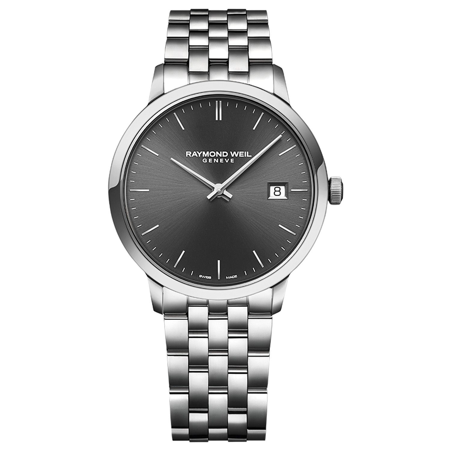 Raymond Weil, Toccata with a 39mm stainless steel case and bracelet strap featuring a date function and a grey dial.