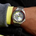 A limited edition piece with only 7,000 made worldwide, this 5 Sports timepiece is the second collaboration with skateboarding and streetwear brand HUF. The HUF brand was founded by former New York skateboarder, Keith Hufnagel. The watch takes it’s design from the famous 1960s Seiko Regatta Timer and the HUF logo appears on the dial, caseback and crown.