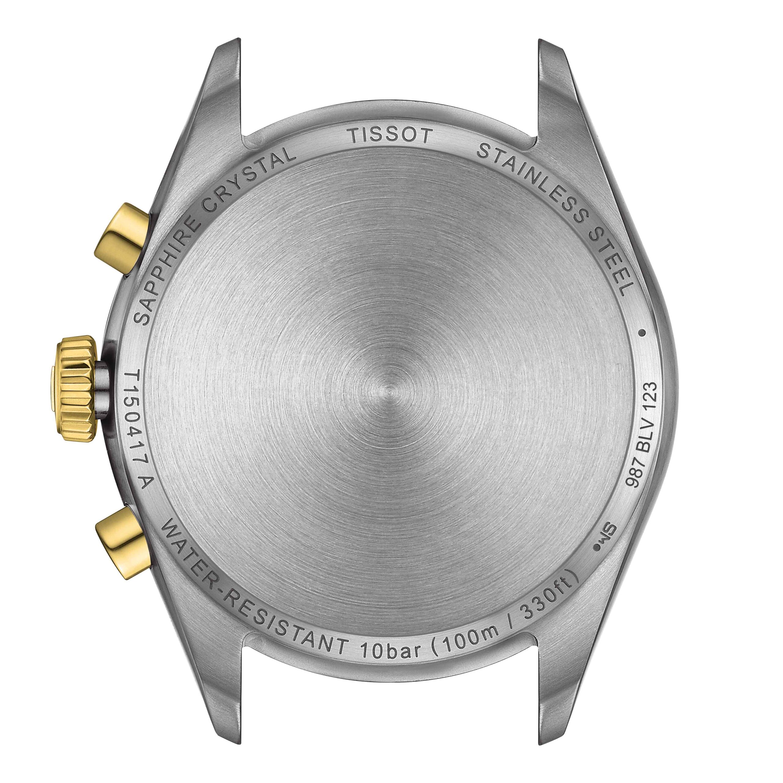 Tissot, PR 100 Chronograph with a 40mm stainless steel and yellow gold PVD coated case and bracelet strap featuring a date function, chronograph and a silver dial.