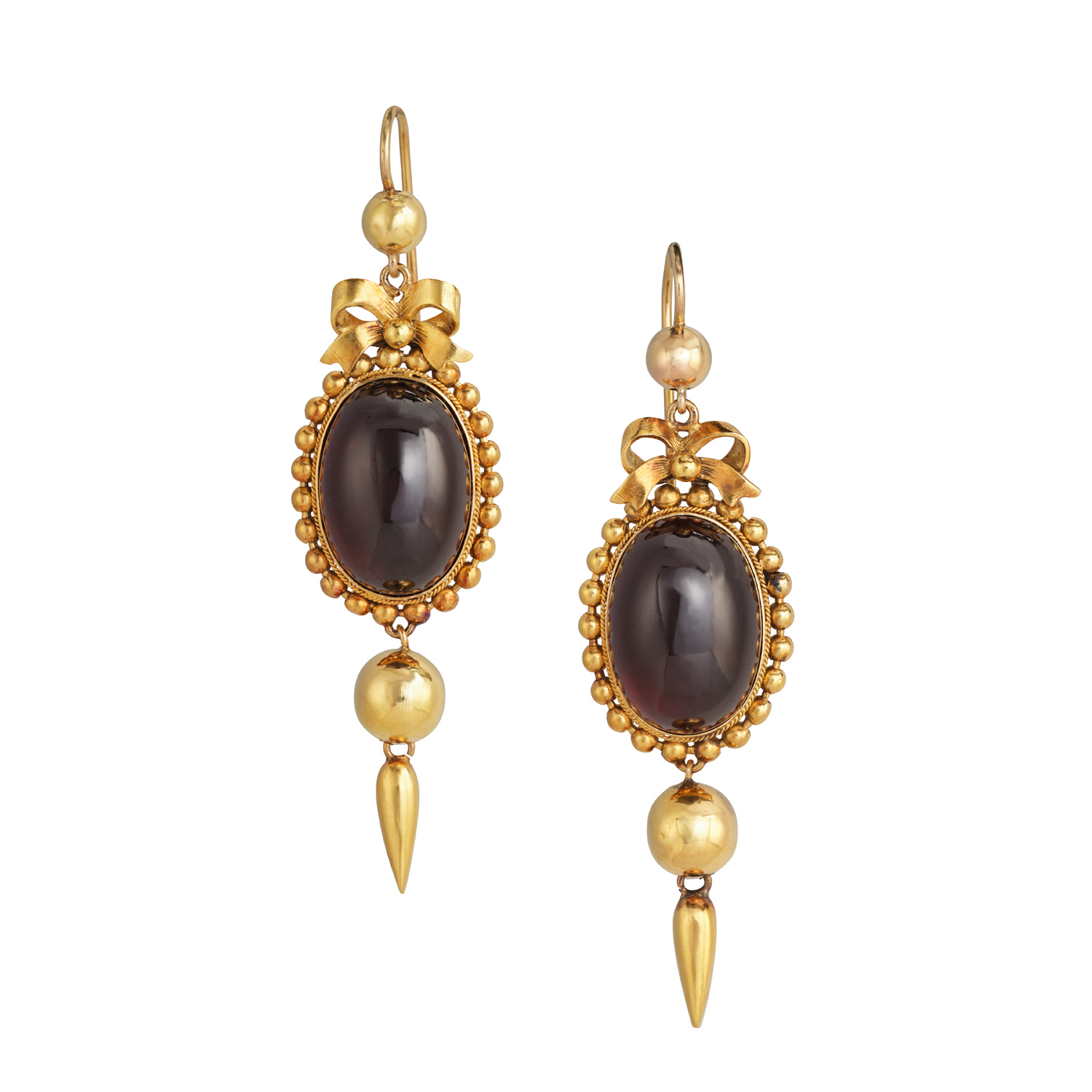 Victorian Cabochon Garnet Drop Earrings